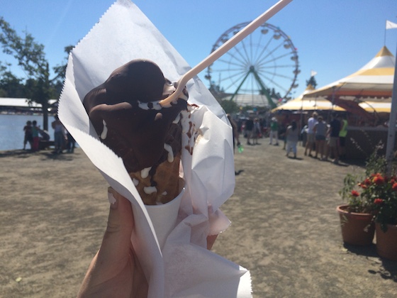 We spent the rest of the afternoon and evening at the fair. We admired the cows and horses, watched an acrobatics show, rode the Ferris wheel, and enjoyed an incredible fireworks show. The perfect all-American day. For an afternoon snack I had chocolate dipped soft serve – a fair classic, no?