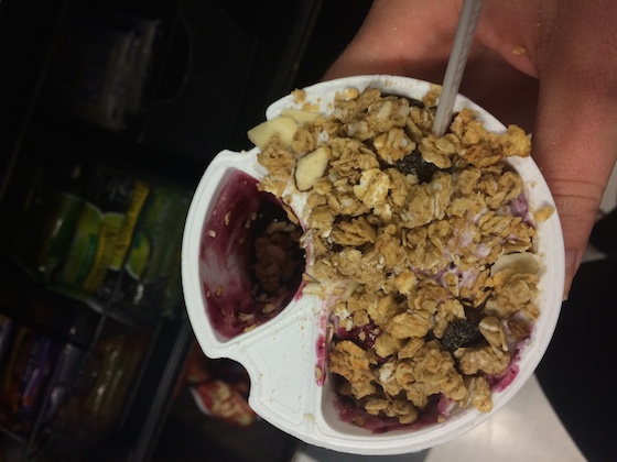 I did get hungry mid-afternoon, however, so I grabbed some blueberry Greek yogurt for a snack. I sprinkled just a small amount of granola on top. This filled me up surprisingly well, as yogurt usually does for me, I’ve found.