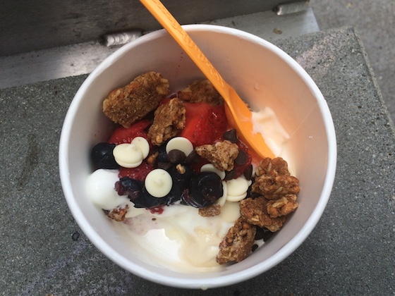 In the early afternoon I took off for a long walk. I retraced the route I used to take to walk to my high school – what a fun trip down memory lane! Next I went to Trader Joe’s to pick up a couple of things. I ended up leaving with more than double the items I went in for because there were some new products I’d never tried before. Seriously, you can’t trust me around TJ’s. For the past few weeks I’d been craving frozen yogurt, so I also stopped at Yogurtland for a small snack. Coconut yogurt topped with berries, chocolate chips and granola is my favorite combo.