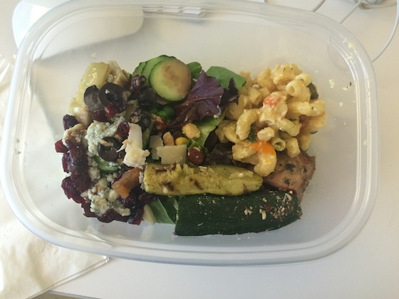 Lunch was a mix of lots of different yummy flavors. I filled up with a bunch of lettuce, then topped it with more veggies, chicken, and some pasta.